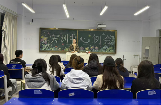 学前教育系实训中心于2025年10月12日星期日晚自习在2楼公共阶梯教室顺利开展本学期第一次2025级新生、2024级老生实训员工作部署例会。本次例会旨在统筹安排新阶段的实训任务,明确工作职责,并进一步凝聚团队力量。实训中心李京老师及全体大一、大二实训员共同参加了此次例会,无一人缺席。