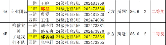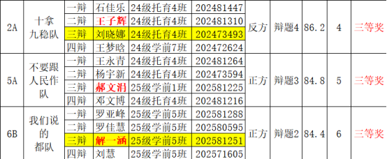 经过激烈角逐,评委团根据各队论点明晰度、逻辑严密性、辩驳力度、语言表达及团队配合等方面进行综合评定,最终评选出团体一等奖1名、二等奖2名、三等奖3名,并授予6名表现突出的同学“优秀辩手”荣誉称号。