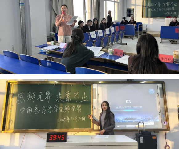 为活跃校园文化氛围,锻炼学生逻辑思辨与语言表达能力,引导学生深入思考职业规划与个人成长议题,2025年12月2日14:30至16:30,学前教育系在304教室成功举办了“思辨无界,求索不止”大学生辩论赛。比赛吸引了来自全系12支代表队、共计48名同学参与,现场气氛热烈,思辨火花四溅。